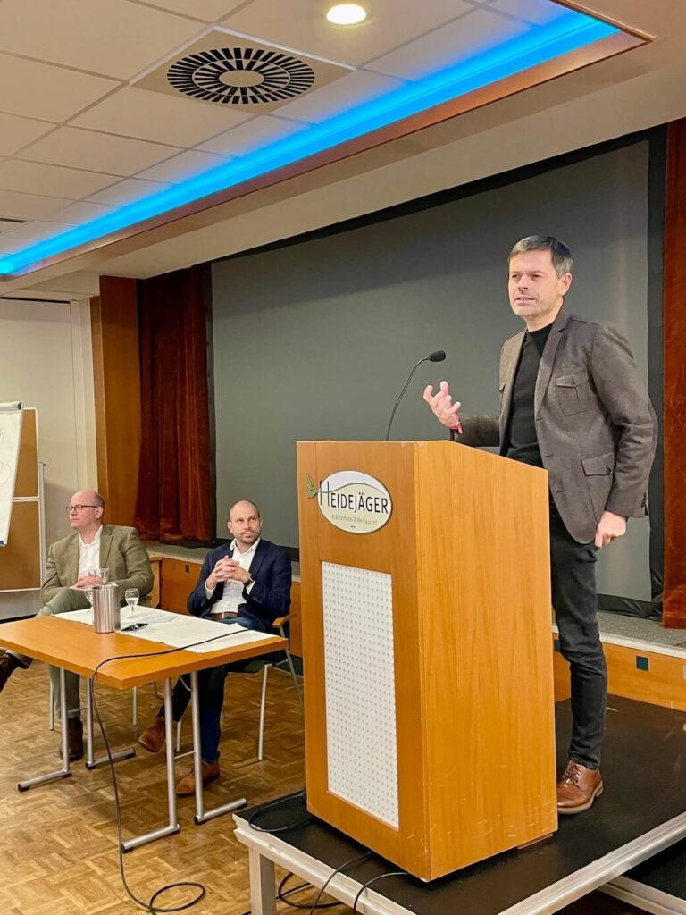 Ausführlich ging Frölich auf die aktuelle Novelle der niedersächsischen Bauordnung ein. Vieles davon sei hilfreich, insbesondere die Ausweitung verfahrensfreier Maßnahmen – etwa für Garagen, Terrassenüberdachungen, Wintergärten, Dachgauben oder kleinere Energieanlagen. Auch die Verkürzung von Grenzabständen zur besseren Nachverdichtung bewertete er positiv. Gleichwohl gebe es Punkte, die in der Praxis weiterhin zu Diskussionen führten, etwa der Wegfall von Stellplatzpflichten bei größeren Wohneinheiten. „Nicht alle haben ein Lastenrad“, merkte er dazu augenzwinkernd an. Entscheidend sei, Vertrauen in die Praxis zu schaffen: „Wir brauchen eine neue Fehlerkultur – wenn die Leute Angst haben, Fehler zu machen, die Geld kosten, dann wird niemand Verantwortung übernehmen.“