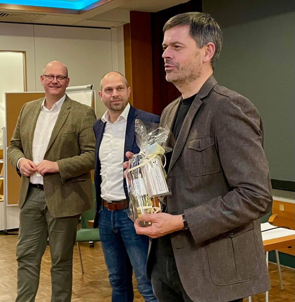 Der Wohnungsbau braucht Mut, Vertrauen und Partner auf allen Ebenen. Dass Christian Frölich noch am selben Abend nach Duderstadt zurückkehrte, um am nächsten Morgen pünktlich um sechs Uhr wieder auf dem Hof zu stehen und seine Leute für die Baustellen einzuteilen, unterstrich: Ein Handwerker durch und durch – bodenständig, glaubwürdig und mit Herzblut dabei. Marco Mohrmann und Eike Holsten dankten ihm für einen tollen Impuls und machten noch einmal Lust auf die Kommunalwahlen 2026 und darauf, sich zu engagieren.
